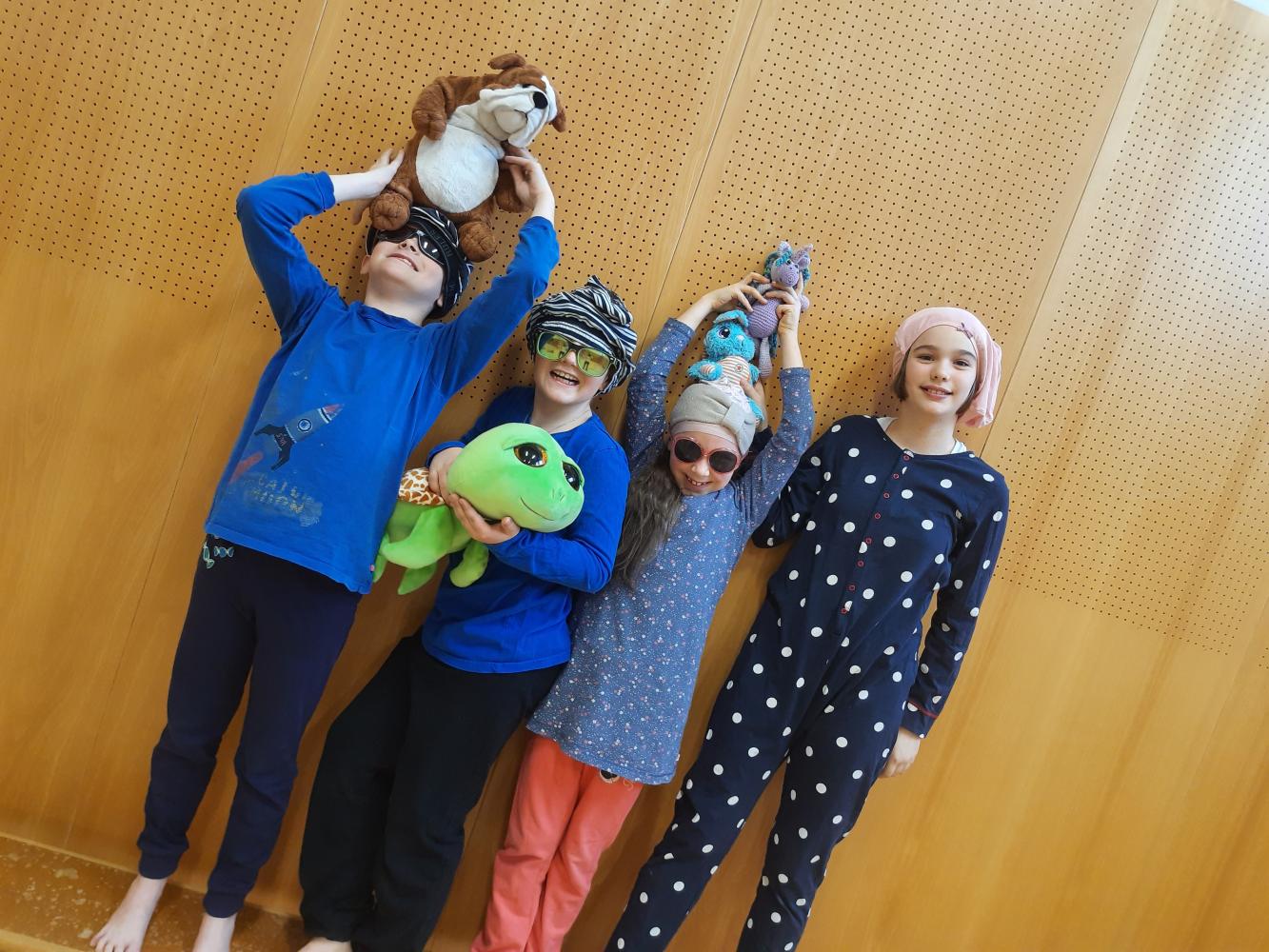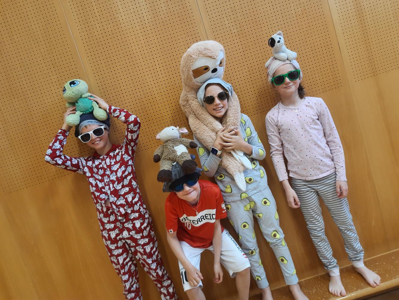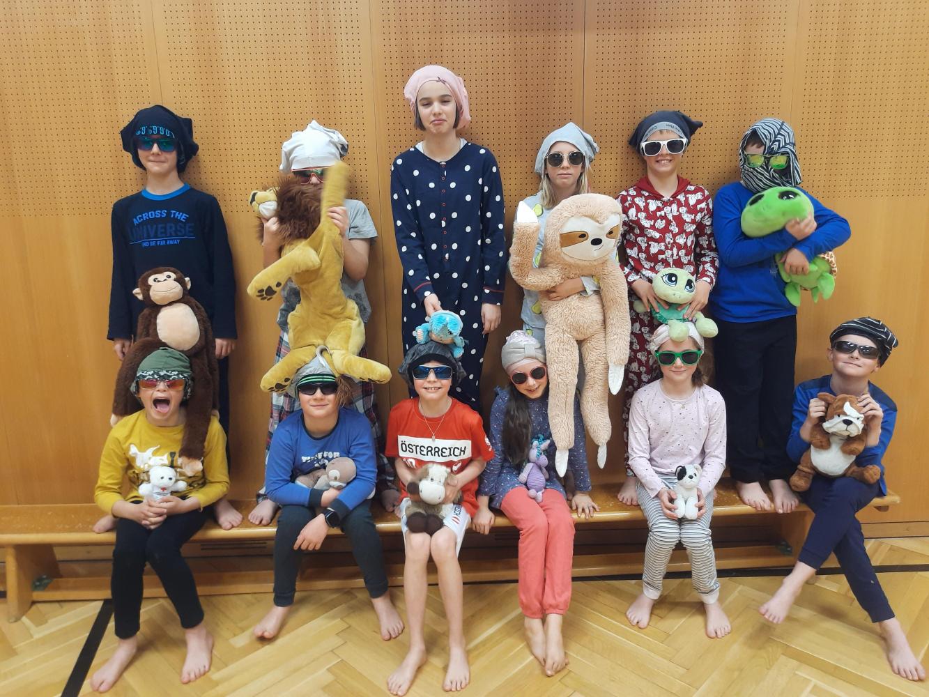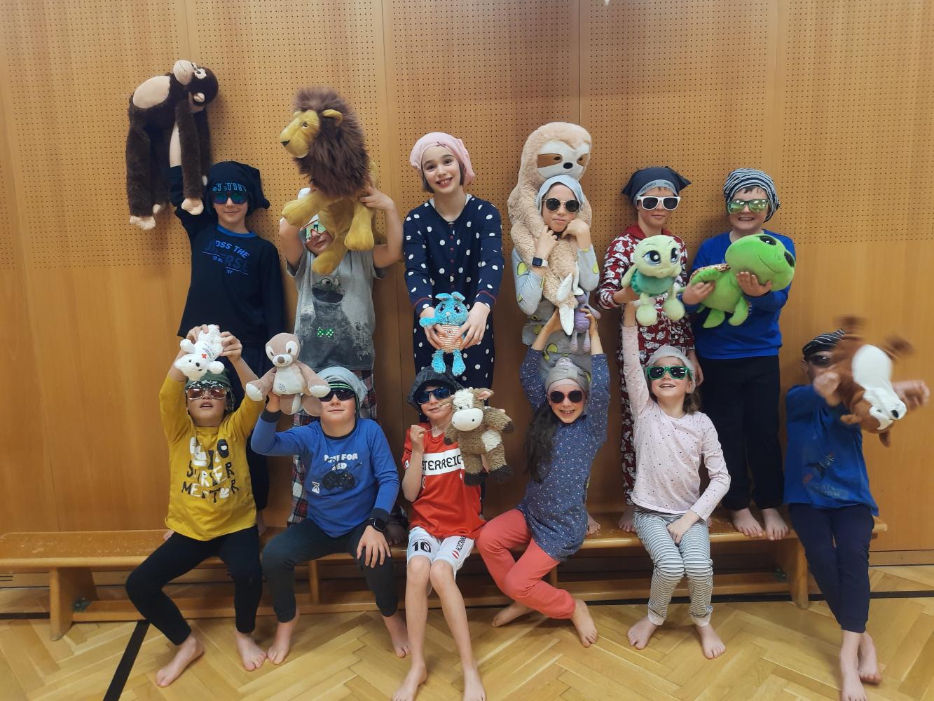 Fertig umgezogen und mit Kuscheltier im Arm warteten sie im Turnsaal geduldig auf den Start.
