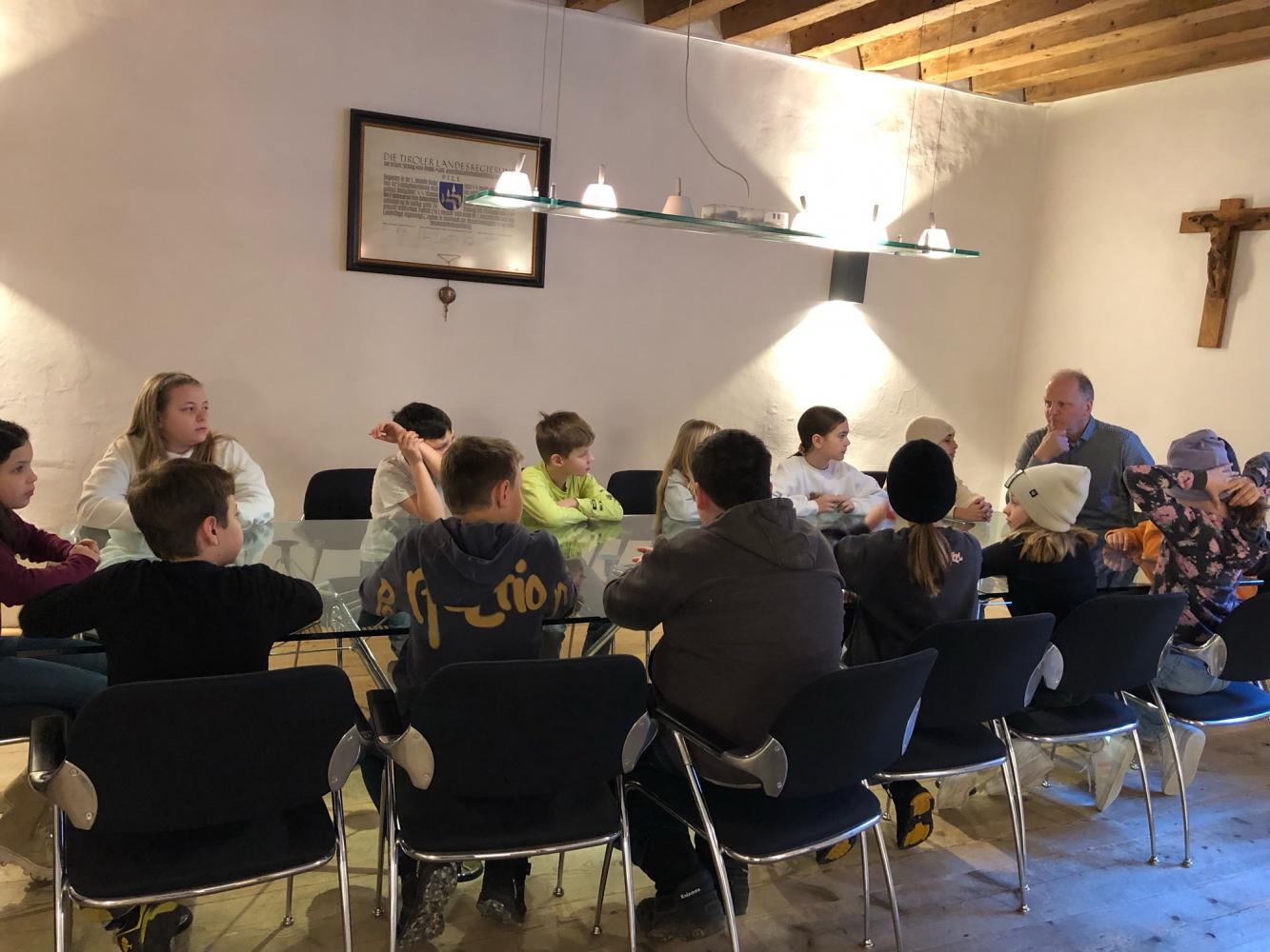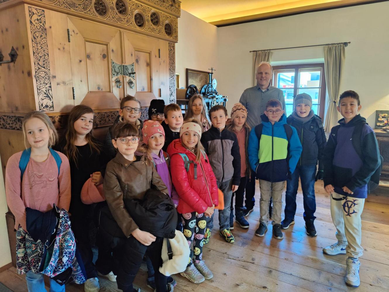 Besuch bei der Gemeinde von Ingrid Lentner 06. März 2025 Anfang März wurden die 3. und 4. Stufe eingeladen, den Bürgermeister zu besuchen.Im Sitzungszimmer konnten die Kinder die Plätze der Gemeinderäte einnehmen und dem Herrn Bürgermeister Fragen stellen.Vielen herzlichen Dank für die Einladung!