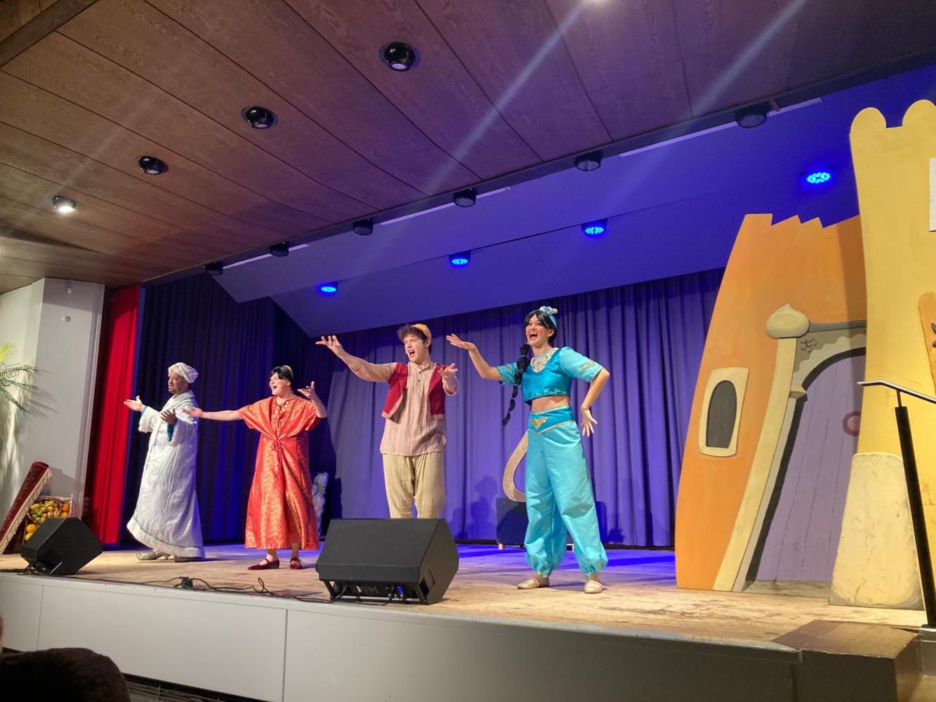 Am Dienstag, 05.11.2024, gab es für unsere gesamte Schule einen besonderen Ausflug: Mit dem Zug fuhren wir gemeinsam zum Theater nach Jenbach, um das Stück „Aladdin“ zu erleben. Die Vorstellung war eine Mischung aus Humor, Spannung und mitreißender Musik – ein echtes Erlebnis für Jung und Alt! Die Kinder waren völlig begeistert von der tollen Inszenierung, den lebendigen Kostümen und den beeindruckenden Musiknummern. Es war ein unvergesslicher Tag, der noch lange in Erinnerung bleiben wird.