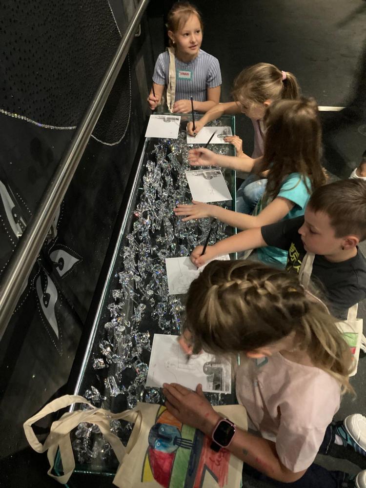 Der Besuch in den Swarovski Kristallwelten am 16.05.2024 hat allen Kindern der 1.und 2. Schulstufe VS Pill sehr gut gefallen. Zu Beginn durften wir Taschen selbst bemalen und mit Kristallsteinen verzieren. Anschließend ging es in den großen Riesen. Dort sahen wir unterschiedliche Räume und Kristallsteine. Am besten hat uns der kalte Raum mit echtem Schnee gefallen. Zum Abschluss durften wir noch eine Runde mit dem Karussell fahren und durchs Labyrinth laufen.