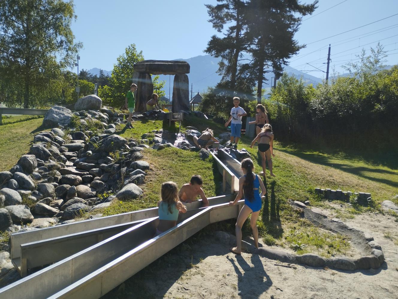 spielten die Kinder den ganzen Vormittag am Wasserspielplatz und hatten